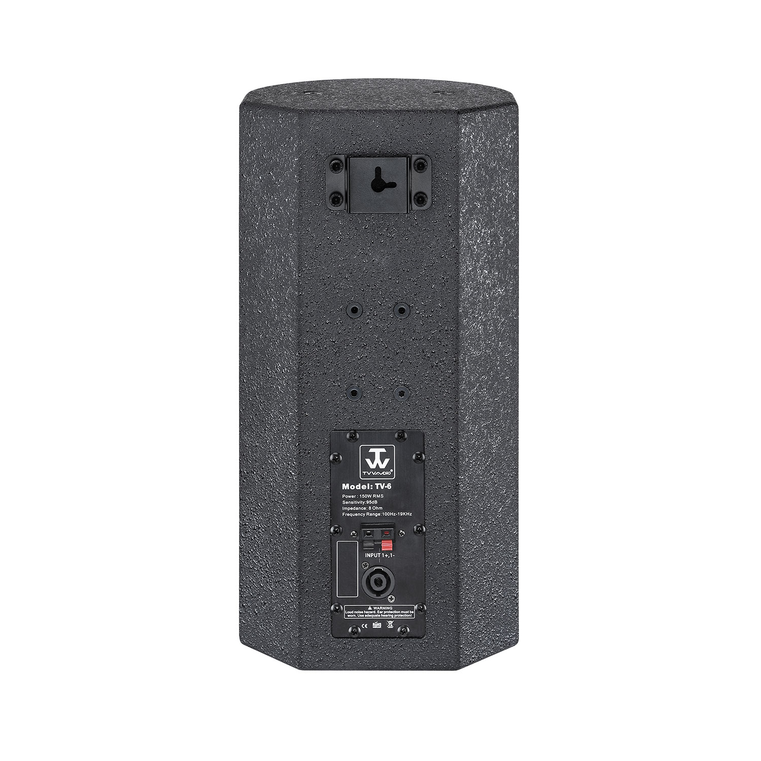 TV-6 is a 2-way full range loudspeaker, designed for main professional use for conference as side/rear fills. TV-6 is using with 1PC 6.5inch woofer, plus 2pcs 3inch cone tweeter. It offers an exceptional dynamic reproduction and impressive power, complex passive filtering ensuring very high fidelity and reliability. It can be mounted with functional wall bracket, M8 Eye-bolt, the cabinet is coated with durable paint, and color can be customized.