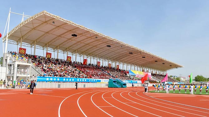 本体育场具备多功能型用途,包括承办本院校及庆阳市各类中大型运动会,会议、动态互动等团体活动,还可以兼顾中大型演出活动。音响系统特别配置了 16 只HT-152远射程户外防水音箱,8只双高音15寸台顶监听, 及配备单18寸远射程低音炮。